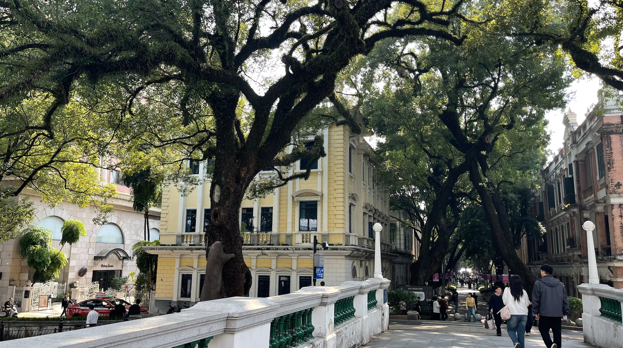 欧式建筑、法桐树、老茶室、驻足拍照的情侣、散步的外国人——